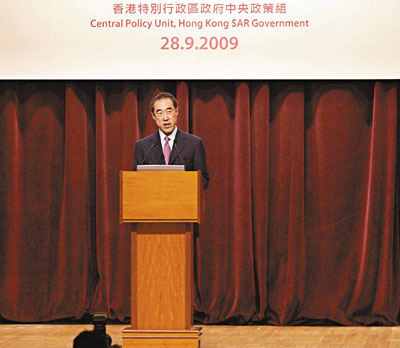 由中央政策組主辦的「全球及中國的經濟形勢與香港未來發展」研討會昨日舉行,邀請多位來自內地及海外的官員和專家學者,包括國家發展和改革委員會副主任劉鐵男、政務司司長唐英年、中大校長劉遵義及1999年諾貝爾經濟學獎得主羅伯特.蒙代爾教授等,探討中國未來經濟形勢、人民幣未來發展路向及國際貨幣改革等課題。