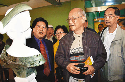 ■吳康民考察珠三角生態及產業。圖為在雲浮訪問。