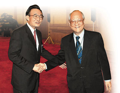 ■全國人大委員長吳邦國會見港區全國人代吳康民。