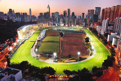 ■跑馬地馬場四周高樓環抱,讓進場人士置身鬧市之中,感受醉人夜色與賽事氣氛。