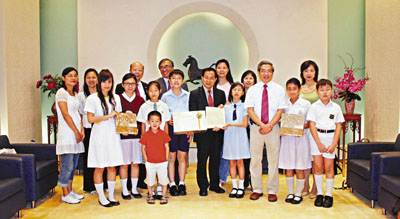 和富社會企業會長李宗德聯同13名老師、家長、學生,昨日一起將畫冊和信函送交到中聯辦,由中聯辦教育科技部副部長莫錦強接受,代為轉送給國家主席胡錦濤、總理溫家寶。