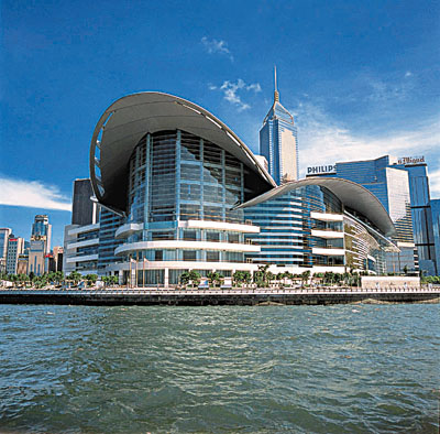 ■造型獨特的香港會展中心成為維多利亞港灣獨具特色的建築