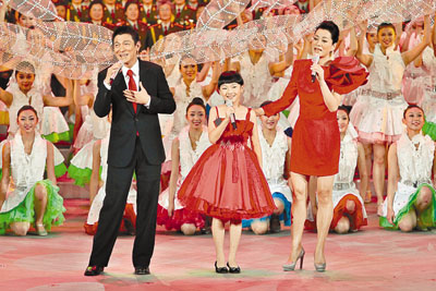 ■在北京慶祝建國60周年,劉德華、豆豆、毛阿敏一起演唱。中央電視