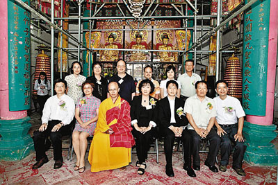 ■灑淨法會前,青山寺慈善信託理事會主席鄧楊詠曼(前排中)與一眾嘉賓和法師合影。