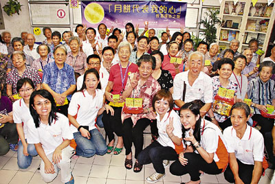由「信和之友」組成的義工隊日前到竹園北村賽馬會老人之家及寶林賽馬會老人之家,舉辦「2009月餅代表我的心」長者探訪活動,與逾百名長者一起慶祝中秋節。