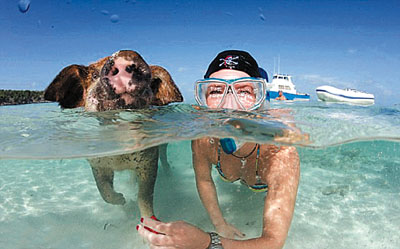 甲型H1N1流感最初稱為「豬流感」,引起全球對豬隻產生恐慌,就在人人自危的同時,加勒比海地區的野豬卻自由自在,不知道豬流感是何物,只顧在水中自由自在地游泳,享受暢泳的樂趣。