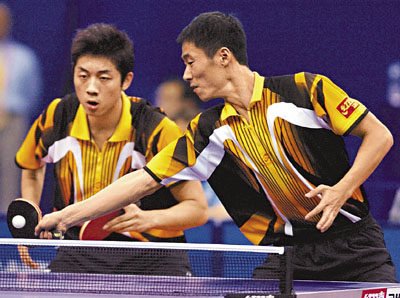 ■王勵勤/許昕為上海隊成功衛冕男雙冠軍。新華社