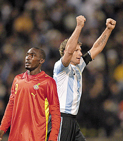 至於力爭在世盃外圍賽突破重圍的阿根廷國足,昨晨派出阿國本土球員出戰熱身賽,憑中鋒巴勒莫獨中兩元,主場以2:0擊敗加納,在兩周後的外圍賽大戰前夕打下強心針。