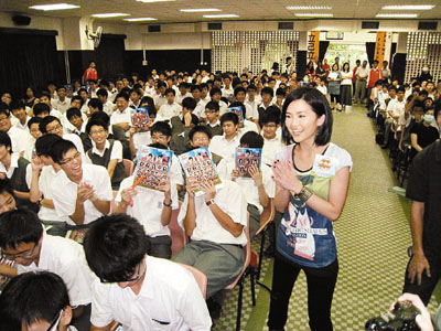 【本報訊】(記者 黃佩麗)蔡卓妍(阿Sa)、鍾舒漫和Dear Jane昨日出席在某男校舉行的校園活動,為活動擔任榮譽校監的阿Sa在台上與學生分享與家人相處之道,鍾舒漫則自彈自唱,場面熱鬧。