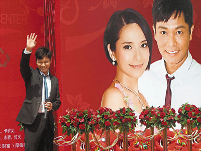 上午11時,兩人自港抵達厚街鎮展覽中心2號館,為家居飾品中心助陣。現場早已樹立兩人並肩而立宛若夫妻照的巨幅頭像,又擔任頒獎嘉賓為東莞評選出來的「10大和諧幸福家庭」送上證書和獎品。
