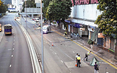 ■肇事私家車在香港仔海傍道撞死橫過馬路的老翁,警方用帳篷遮蓋老翁屍體。資料圖片