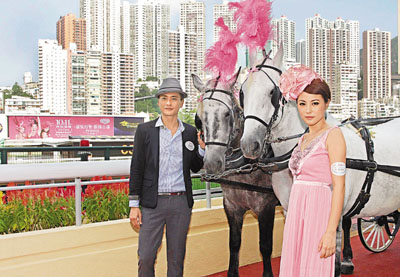 ■跟靚女型仔劉心悠與黃宗澤做「騷」,兩匹馬也插上彩色羽毛。