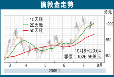 倫敦黃金周二走高,踏入歐洲市時段突破上月高位1,024美元,最高見1,026.35水平,因美元走軟,原油價格上揚回70美元上方,以及經濟不確定性猶存下,令部份資金流入金市,把金價推上至18個月以來最高水平。原油價格受經濟樂觀情緒的帶動走高,美國原油期貨收於每桶70美元之上。美元兌歐元和一籃子貨幣周一走軟,周末舉行的七國集團(G7)財長會議鞏固了市場有關決策者對美元逐步走軟並不擔心的觀點。