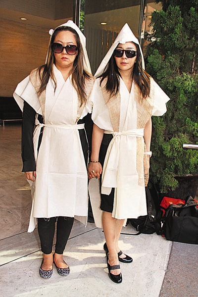 喻可欣的父親喻舲居上月28日病逝,享年85歲。昨日喻家於香港殯儀館設靈,喻可欣與媽咪、妹妹喻可南均有出席,原本喻媽媽答應記者入內採訪,但殯儀館方面卻反對。因此身穿孝服的喻可欣偕媽媽到靈堂外接受記者訪問(見圖),喻可欣表示披麻帶孝後,終接受父親已魂歸天國的事實。對於舊愛劉德華,喻可欣表示與對方很久沒聯絡,也不想多講。問到她想不想華仔出席喪禮?她希望爸爸的告別式可在安祥及不受騷擾情況下進行。(何時回台灣?)「仍有事要辦,但爸爸的骨灰會將一半灑入海,另一半會保存起來。」