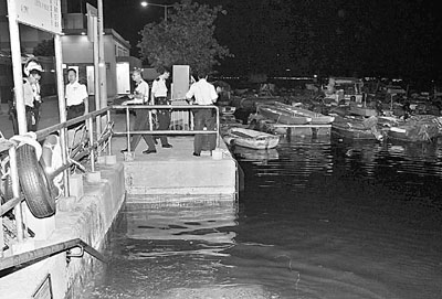 ■警員在他墮海位置調查。本報記者溫瑞麟 攝
