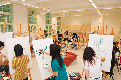 ■浸大早年向政府租用前皇家空軍軍官俱樂部,復修成該校視覺藝術院。圖為學生在學院內上課的情況。