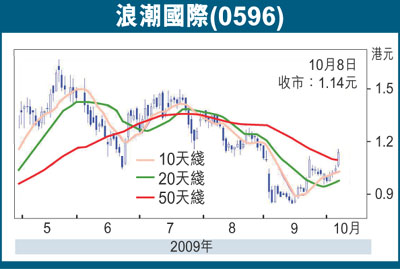 浪潮母公司為內地IT服務業巨頭的浪潮集團,獲得後者悉心「栽培」,一直是此股其中的主要賣點。今年9月初,浪潮集團便再有注資壯大浪潮的舉措,以3,000萬元人民幣的作價(約3,400萬港元),向其轉讓數字媒體事業部所擁有與新媒體及數字有線電視系統和視頻點播系統解決方案有關之產品技術發展、市場推廣及應用服務的資產和業務。這宗「注資」行動,在盈利方面作出保證,09年12月底止年度業務之實際稅後盈利低於600萬。浪潮09年6月底半年盈利大增25%至1.63億元,今次「注資」勢必為業績帶來新動力。就估值而言,浪潮09年預測市盈率12.67倍,而明年則為10.36倍,仍處合理水平,在併購壯大步伐推動下,預計此股後市再度挑戰1.67元仍是可以預期的事。