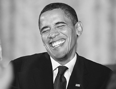 ■奧巴馬出席白宮金融改革會議時,流露獲獎喜悅,笑到「見牙不見眼」。路透社