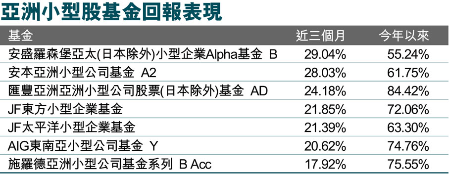 亞洲小型股基金回報表現