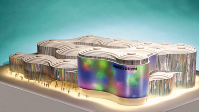 ¡@»P¥Ñ¿ûµ¬¡B¬Á¼þ«Ø³yªºª½½u§Î´¶³q«Ø¿v¤£¦P¡A¤¤°ê¥Á¥øÁp¦XÀ]¤jÁx±Ä¥Î¤F¦±½u§Î³]p¡C¥B«Ø¿vªí¼h±Ä¥Îªº´¼¯à½¤¡]¿E¥úÅJ®g½¤¡^¦b¥@¬É«Ø¿v¥v¤W¤]¬O²Ä¤@¦¸¡C³oºØ´¼¯à½¤¬O±N¤@¼h¾T»sªº¤Ï¥ú§÷®Æ¶î¦b³z©ú½¤ªºI«á¡AÀHþÓ¶§¥ú§é²{¥ú½uªº¨¤«×¤£¦P¡B°ÑÆ[ªÌ¨¤«×¤ÎµøÂI¶ZÂ÷ªº¤£¦P¡A©Ò§e²{¥X¨Óªº¦â±m¡B´º¶H¤]¤£¦P¡C