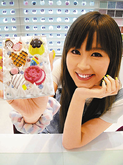 傅穎說:「其實我一直都好鍾意gemming鑲嵌藝術,因為它的創作空間很大,可以隨意造出自己喜歡的東西。所以我係Crystal Jam的常客,現在陳文媛更引入日本至新至潮的唧唧忌廉技術,聽講仿忌廉像真度極高,我第一時間就想試玩。」結果,傅穎挑選一些美味仿真食物配件,準備親手創作一件獨一無二的曲奇、布丁、雪糕「甜品」拼盤。
