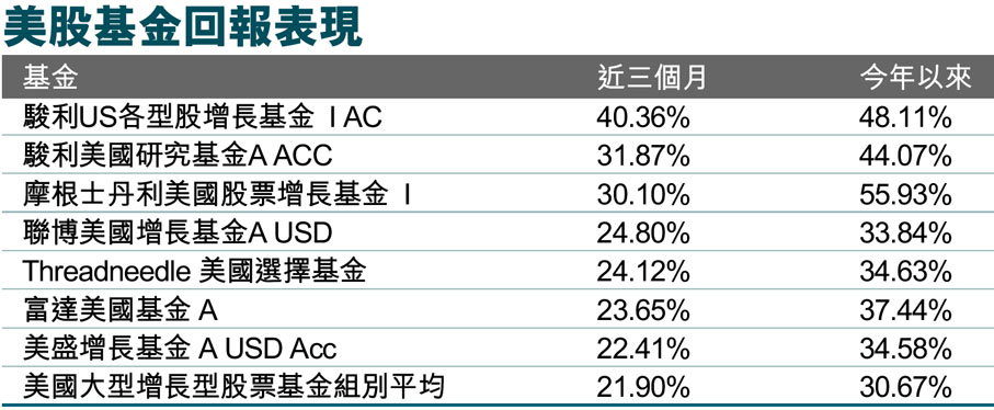 美股基金回報表現