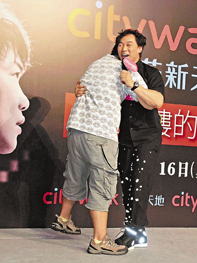 【本報訊】(記者 黃佩麗)陳奕迅前晚出席《上五樓的快活》新碟發佈會,並與歌迷大玩遊戲,其中一位男歌迷相當熱情,三次熊抱陳奕迅,又把陳奕迅抱起,難得陳奕迅毫不介意,當那歌迷落台前想再攬他,他就開玩笑地說:「不要再抱起我了,我怕走光!」又說攬人是一件開心事,見到熱情的歌迷亦很開心。本身沒有歌迷會的陳奕迅表示,每次舉行這些活動都當是與歌迷聚會。