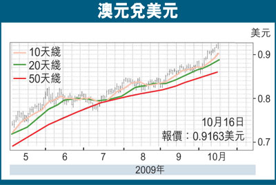 另一方面,澳洲央行在本月6日宣布升息4分之1厘後,澳洲央行行長又於上周表示傾向把澳元利率回復至正常水平,因此市場已不排除澳洲央行將頗有機會於第4季有進一步的升息行動出現,所以在息差因素將持續利好澳元匯價表現的影響下,澳元將可能續有反覆上調空間。由於日圓匯價的升勢在近期連番受制於88水平後,已進一步跌穿90水平,故此該情況亦已導致澳元兌日圓交叉匯價逐漸從本月初段的76水平反覆上揚至上周五84.20附近的1年來高位,這亦對澳元兌美元構成頗大支持作用。在受到商品價格持續攀升的帶動下,預料澳元將反覆走高至93.30美仙水平。