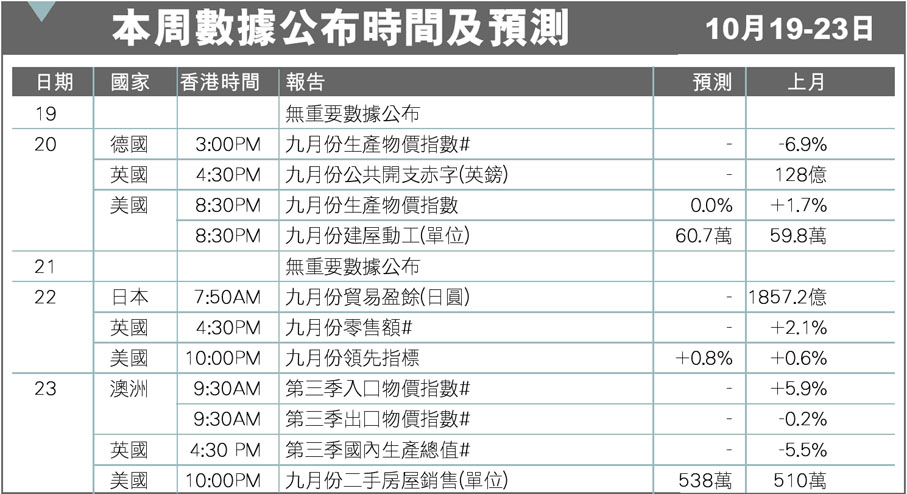 本周數據公布時間及預測10月19-23日