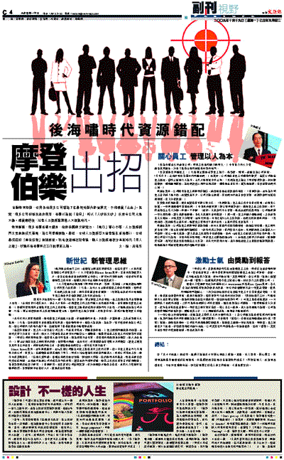 海嘯漸退,很多老闆希望大翻身,但無奈團隊欠缺實力、「馬仔」軍心不穩,人力資源部門又要急急招兵買馬,為公司重整旗鼓。最近,全球人力資源亞太區會議在香港舉行,全球最頂級的「摩登伯樂」急謀對策。記者便趁機走訪會議,聽人力資源專家分享新時代「用人之道」,好讓本港老闆和打工仔能重新上路。