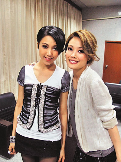 容祖兒(圖右)及鍾舒漫日前到北海市舉行移動歌友會,二人獲大會安排在海邊一間酒店宴會廳舉行歌友會,無敵大海景及酒店內的泳池令二位大叫「可惜」,因為沒有帶備泳衣來暢泳,真是浪費好風景。有記者介紹,她們北海市一年四季都適合游泳,下次來一定要帶備泳衣。歌友會時,現場的歌迷非常熱情,更在台下不停唱著祖兒的歌曲,在遊戲環節更有熱情歌迷抱著她不放手,還叫她們多點來演出。因為期待已久終於等到與偶像有近距離接觸,歌迷們很乖地排著隊入場,待祖兒完了訪問來一張大合照。