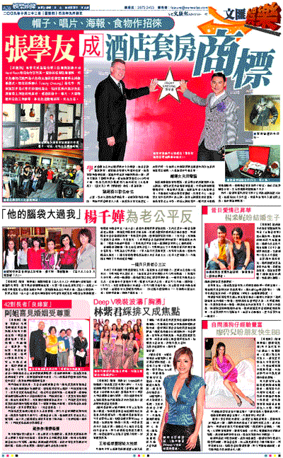 對於關楚耀疑有新戀情,被台灣女伴將親密照片放上網誌,張學友表示看過有關報道,小時候與關楚耀聯絡多些,現在很少見面,他認為年青人拍拖很正常,不過做此行就必須要有犧牲,凡事要小心,他會教女兒不要將照片放上網,放得上網就要承受後果。他指瑤華已上中學,開始上網找資料,雖然家中電腦有過濾軟件,但偶爾會有奇怪照片彈出,他必定在旁輔導女兒,又自詡電腦知識增進了不少。