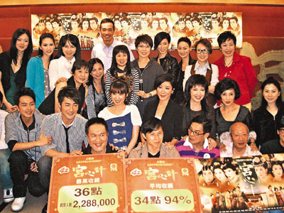 【本報訊】(記者 李慶全)台慶劇《宮心計》於周一首播收視即報捷,首日收視最高36點,平均收視達34點,主角之一的關菊英前晚特別掏腰包筵開六席宴請台前幕後吃飯慶祝,出席的有監製梅小青、同劇演員有楊怡、佘詩曼、陳豪、謝雪心、張國強等,一眾演員到場後都表現興奮,個個雞啄唔斷,非常熱鬧,席間還齊齊上台大合照,並公布《宮》劇打破了03年以來第一線劇集首播最高收視紀錄。不過前晚米雪與鄭嘉穎另有工作在身未有參與。