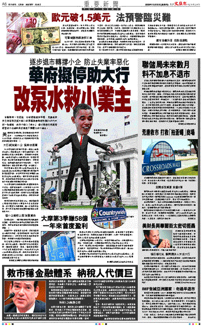 另外兩個上限分別750億和800億美元(5,850億至6,240億港元)的擺脫銀行壞資產和放寬信貸計劃,亦會同時將開支限制於300億美元(約2,340億港元)。雖然有些計劃會結束,但蓋特納表示華府仍未正式決定會否延長今年底到期的整體救市計劃。