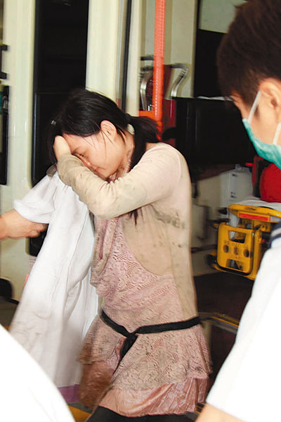 ■在流浮山沙橋村搶灘,被困泥灘蠔排受傷落網的女非法入境者送院。