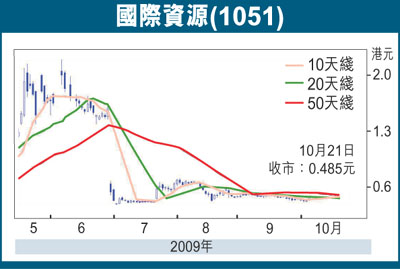 Martabe項目前期工程已展開,並已委任國際知名的Ausenco為Martabe項目總承包商,國際資源有信心該金礦項目於2011年初投產。金礦股在金油價大升後成為基金增持對象,國際資源的投資價值中長線極為吸引,現價0.485元有龐大上升空間,不妨趁低收集,上望0.7元。