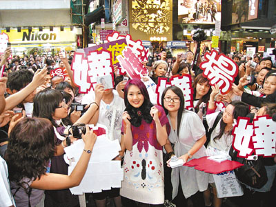 【本報訊】(記者 黃佩麗)楊千嬅昨日現身旺角,為新碟《原來過得很快樂》舉行簽名會,吸引大批市民圍觀,更有乘客從車中伸出頭觀望,場面熱鬧。期間有一名女Fans突然暈倒,最後由在場的六名保安一起扶她入唱片店,並召白車到場。