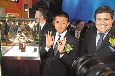 ■城城出席代言的名錶旗艦店開幕,西裝筆挺執到正。