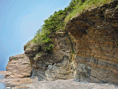 ■崖壁由於長期受風浪侵蝕,導致崖壁向後退,形成一幅海蝕平台。