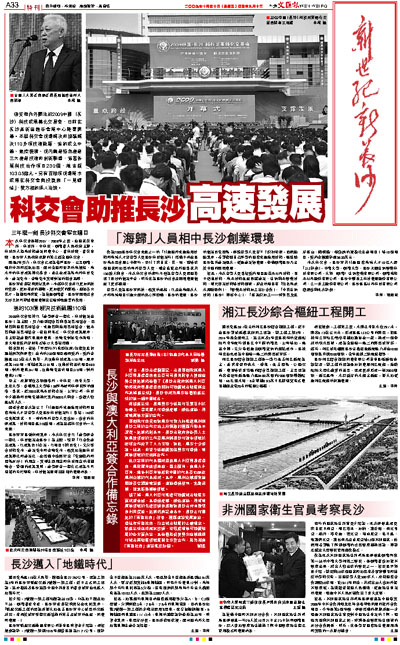 組委會還首次設立了「引進國外先進適用技術和國際高端人才暨留學人員長沙科技創業行」專場,140多名身居歐美、日、韓的海外留學人員參加,參會的科研成果、技術項目達270餘項,成為這屆科交會的一大亮點。