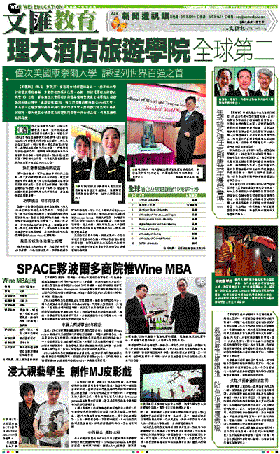 【本報訊】(記者 彭美芳)香港是全球旅遊熱點之一,而本地大學的旅遊及酒店專業,亦處於世界頂尖位置。最新一期的《酒店及旅遊研究學刊》公布,香港理工大學酒店及旅遊業管理學院在全球酒店及旅遊課程的排行榜中,高踞全球第2名,僅次於美國的康奈爾(Cornell)大學,亦是唯一打進該課程排名前列位置的亞洲大學。而單按02年至06年最新的統計,理大更在全球酒店及旅遊課程百強中列全球之首,可見其國際認同程度。