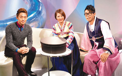 ■阿Rain到訪,陸浩明和鄭文兩主持特地穿上韓服接待。