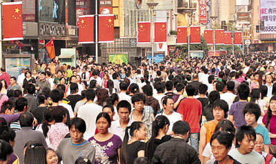 ■中國經濟領跑世界,但面對通脹預期增強,人行的決策因而引起市場廣泛關注。專家認為,除非中國與美國或者G20國家有讓人民幣升值的協議,否則中國不應該提高利率。圖為人流如潮的遊客在上海南京路步行街逛街購物。 新華社