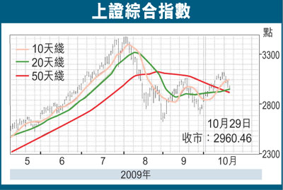 受外圍市場調整和創投板今天上市影響,A股市場昨日繼續示弱整理,滬指退守120日半年線(2,949點),但離下方由2,639-2,712連線所形成的上升通道下軌(在2,800區域)仍有百五點距離,足以消化周末創投板28家股票上市對大盤股指的影響,股指中期震盪向上趨勢暫不變。