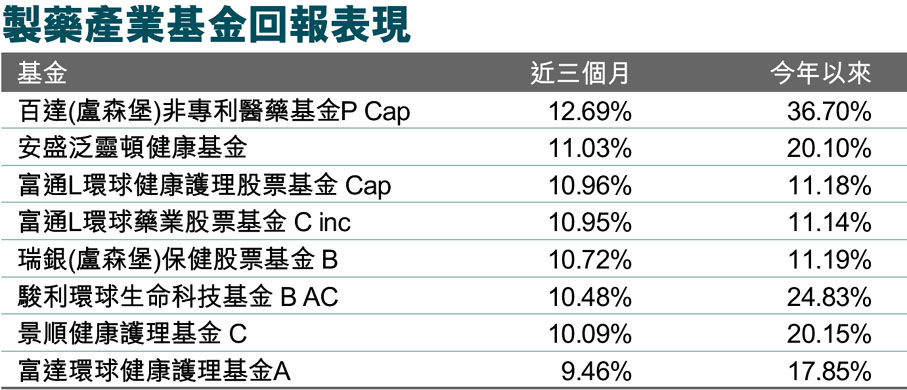 製藥產業基金回報表現