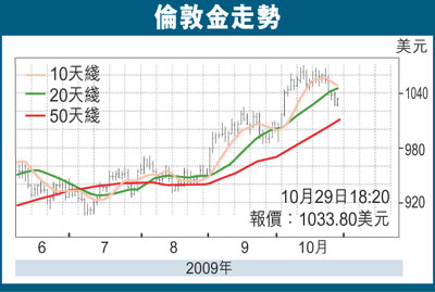 倫敦黃金周三連續第三日觸及三周低位,因美元進一步走強。美元兌歐元再度走強,抹去金價早盤的漲幅。股市疲弱以及對全球增長前景的疑慮也促使投資者更看好美元相對於黃金的避險作用。全球最大黃金支持上市交易基金SPDR Gold Trust持倉量於10月28日在1,104.434噸,較上交易日降1.22噸,本周連續三日減持累計減幅3.66噸。