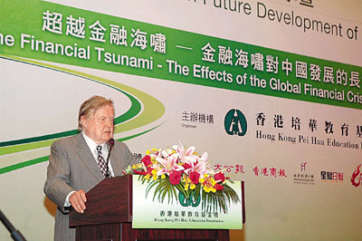 【本報廣東新聞中心記者古寧廣州30日電】諾貝爾經濟獎獲得者羅伯特.蒙代爾在第二屆中國發展論壇上表示,這次的金融危機起因於經濟政策失誤,特別是美國聯邦儲備體系的經濟政策失誤,但遠未嚴重到資本主義崩潰,其次對經濟體系的衝擊亦遠未達到20世紀30年代大蕭條那樣的程度。隨蚍琱葵漸X現,世界經濟核心由此一分為二,一個與美元關聯,另一個與歐元關聯。世界經濟現已變為兩極,匯率在世界經濟中的兩大貨幣之間以前所未有的幅度來回搖擺。單一美元區不復存在,代之以美元區和歐元區,匯率在二者之間來回搖擺。