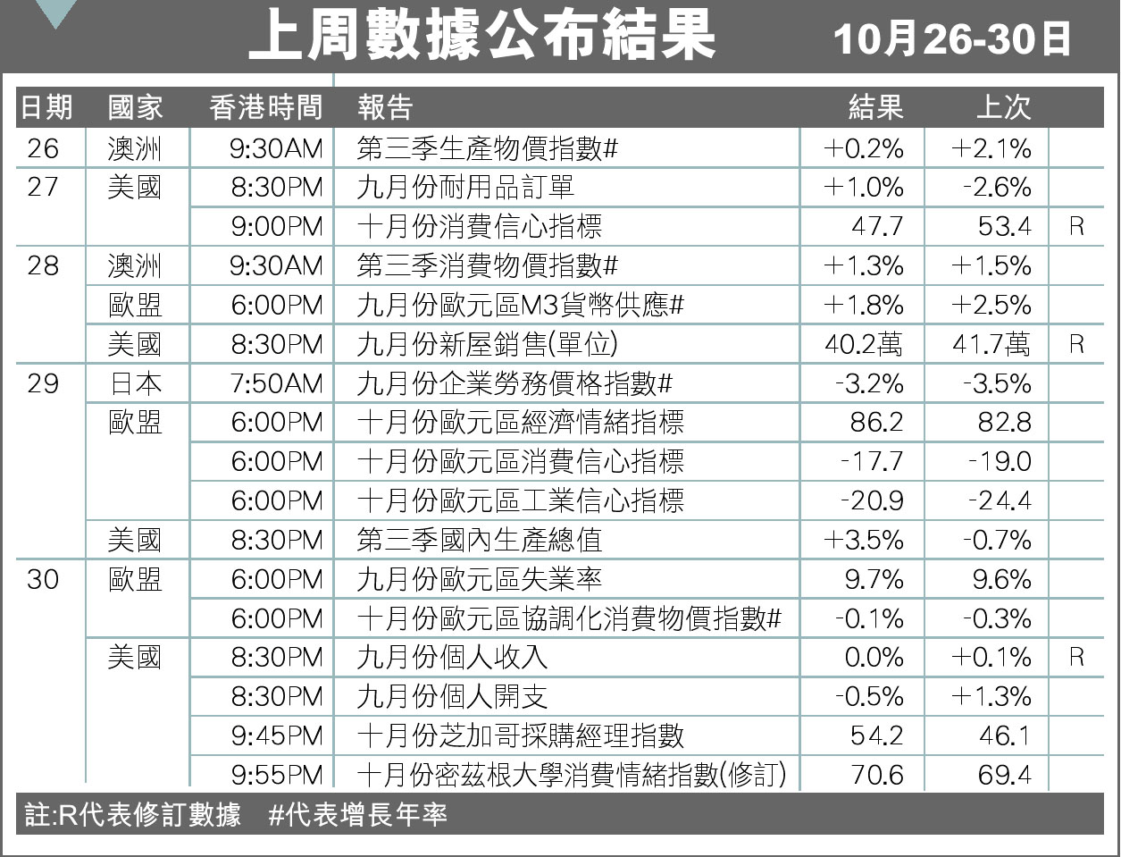 上周數據公布結果10月26-30日 (2009-11-02) (圖)