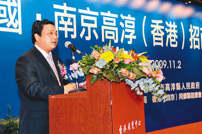 高淳縣縣長謝躍進在致辭中介紹,高淳地理區位獨特,距離南京祿口國際機場僅半小時車程,陸路高速公路東南可直達上海、浙江沿海,往西通聯合肥、武漢等內陸地區,水路直通長江和太湖流域,是境內外資本進入長三角、開拓華東市場群的重要平台。謝躍進表示,當地把建設一流的投資環境視作對外合作的生命線,而在港推介旨在加強與香港工商界人士的交流合作,抓住產業轉移新一輪機遇。