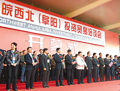 ■第三屆皖西北(阜陽)投資貿易洽談會開幕式現場。 本報記者張長城 攝